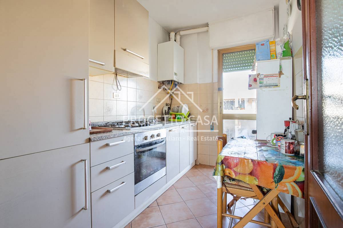 Con una superficie commerciale di 95 m² e calpestabile di 90 m², l'Appartamento si compone di 5 locali ben distribuiti. L'ingresso principale si apre su una spaziosa zona giorno. Il soggiorno, orientato a ovest, dispone di un balcone, ideale per godere dei tramonti. La cucina abitabile, con affaccio a est, beneficia di un ulteriore balcone, perfetto per la colazione mattutina. La zona notte è composta da una camera matrimoniale e due camere medie, offrendo ampi spazi per una famiglia o per chi necessita di stanze aggiuntive, magari da adibire a studio o a camera per gli ospiti. Completa la zona notte un bagno finestrato. L'immobile si presenta in buono stato generale, tuttavia necessita di interventi di ammodernamento. Questa caratteristica offre un'opportunità unica per personalizzare gli spazi interni e adattarli ai propri gusti e necessità, creando la casa dei propri sogni.