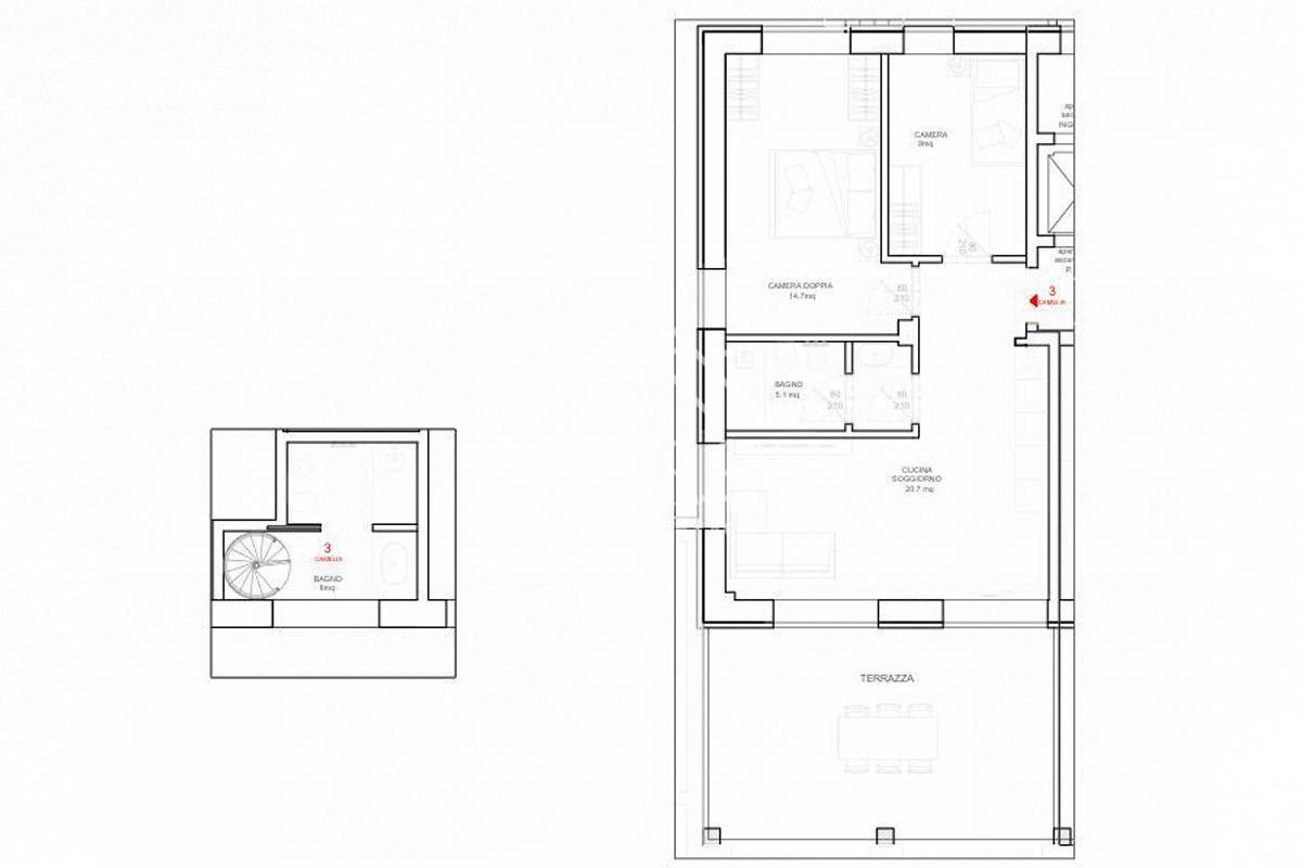 | RIF. A1025 | Appartamento | 71 MQ | 2 CAMERE | 2 BAGNI | TERRAZZA ABITABILE |