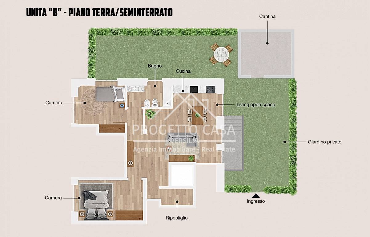 -> Unità "B": (Piano Seminterrato/Terra)